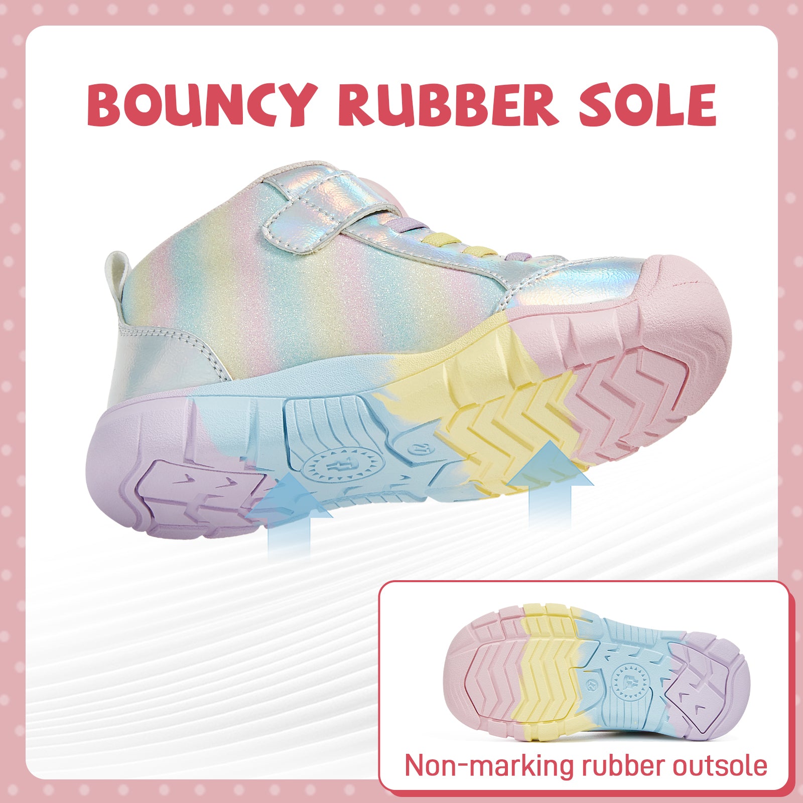 High-traction outsole grips dirt, mud, and light snow, giving kids the confidence to run, jump, and explore without slipping.