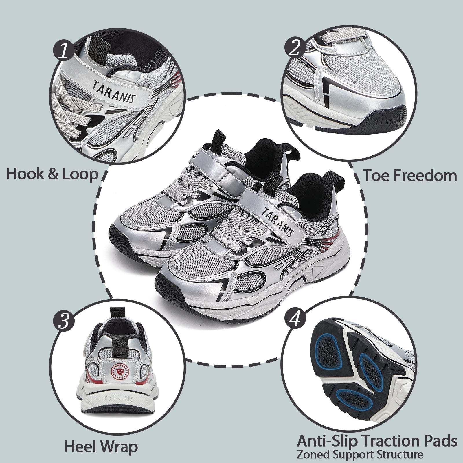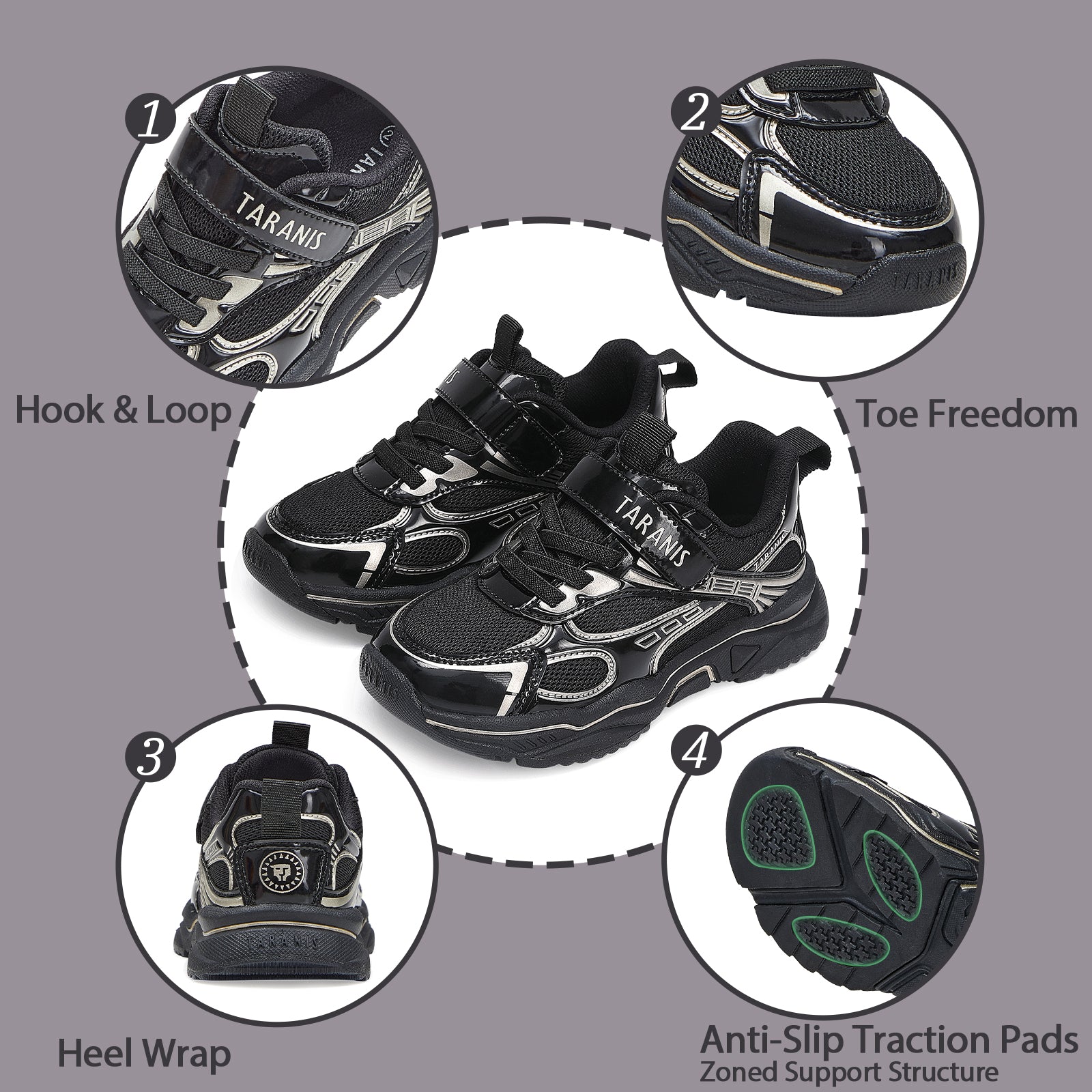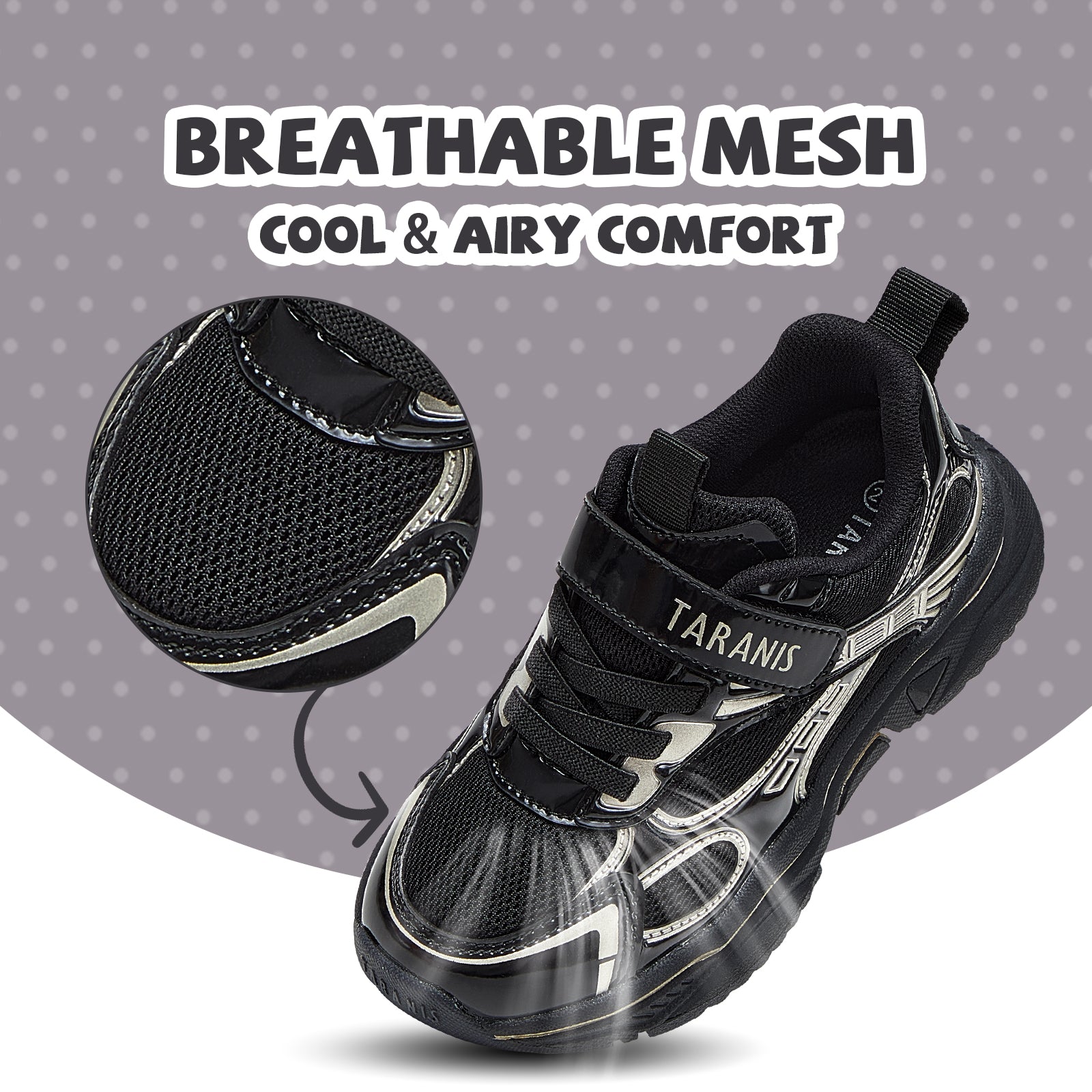 Shock-absorbing soles cushion pressure points, safeguarding growing feet, while vibrant, eye-catching designs let kids move with confidence and style.