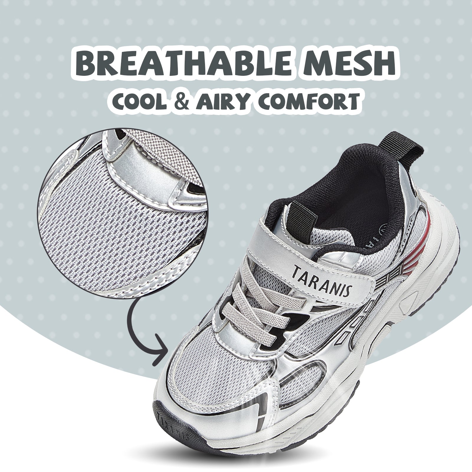 Lightweight sneakers for active kids. Shock-absorbing, breathable, non-slip and wide-toe comfort — supporting healthy foot development during every adventure.