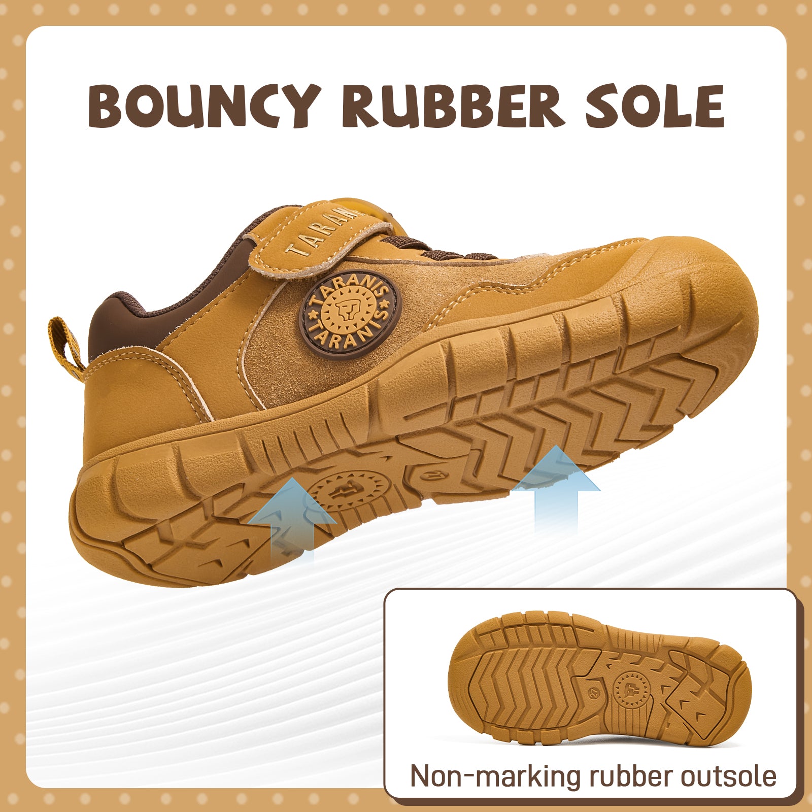 High-traction outsole grips dirt, mud, and light snow, giving kids the confidence to run, jump, and explore without slipping.