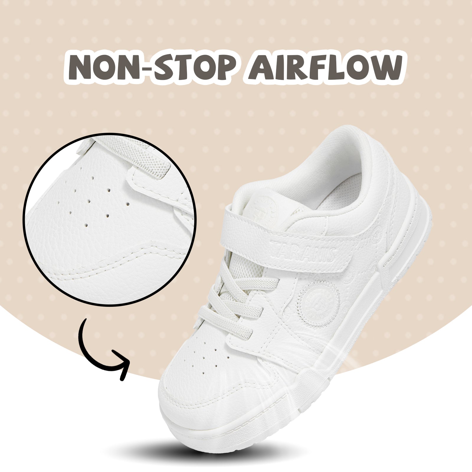 Lightweight kids’ sneakers designed for natural foot growth, with breathable support, wide-toe comfort, and secure hook-and-loop straps—perfect for school and active play.
