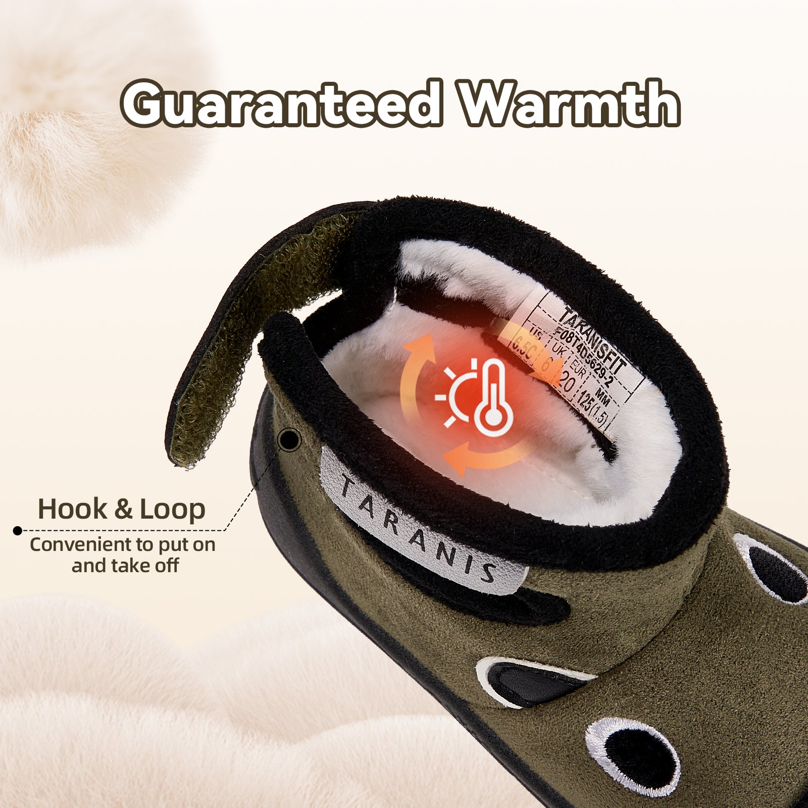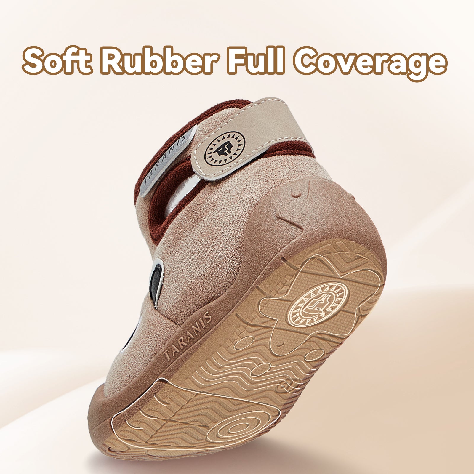 Plush warm lining with memory-foam cushioning, flexible supportive soles, slip-resistant traction, and reinforced toe protection—keeping tiny feet safe, cozy, and confident in every step.