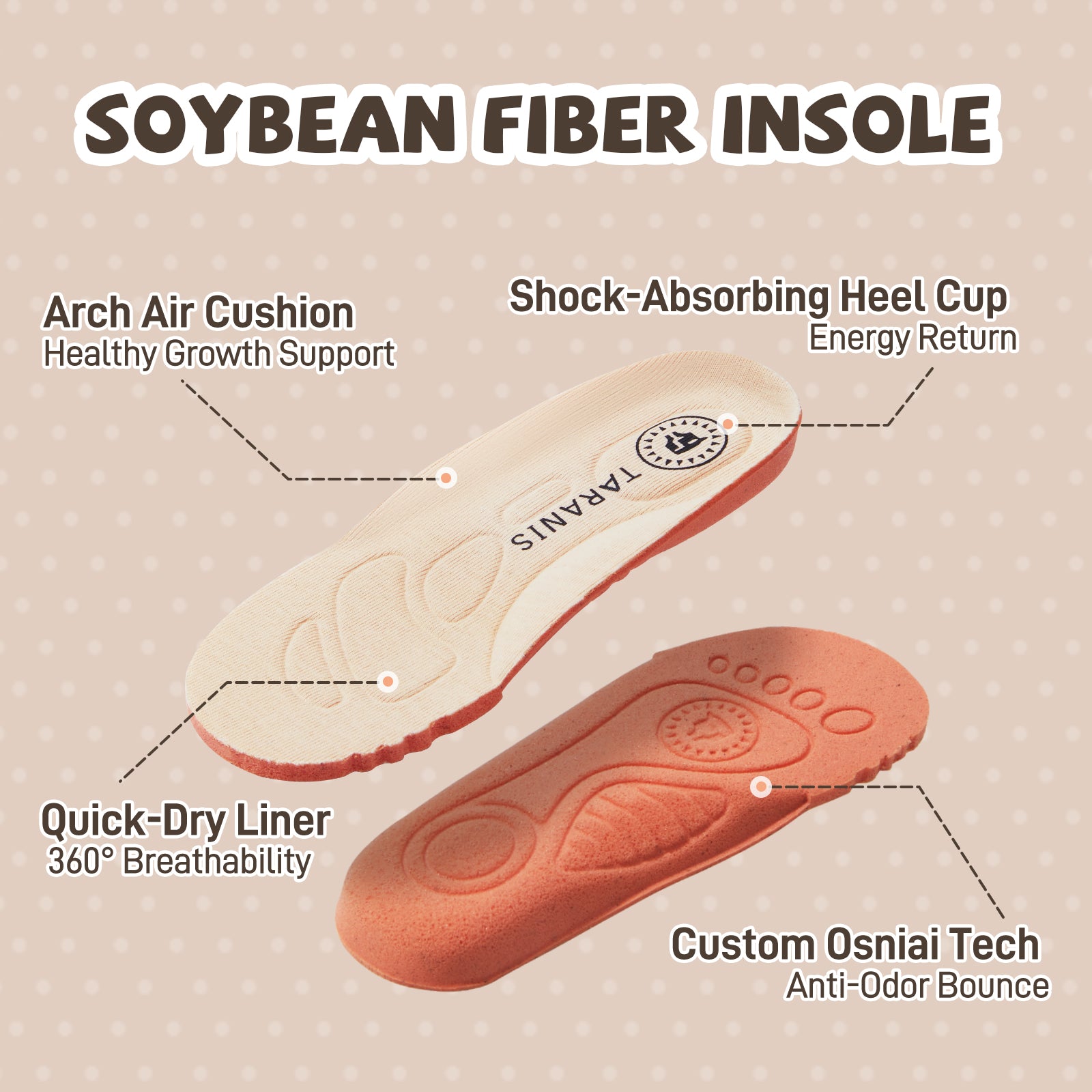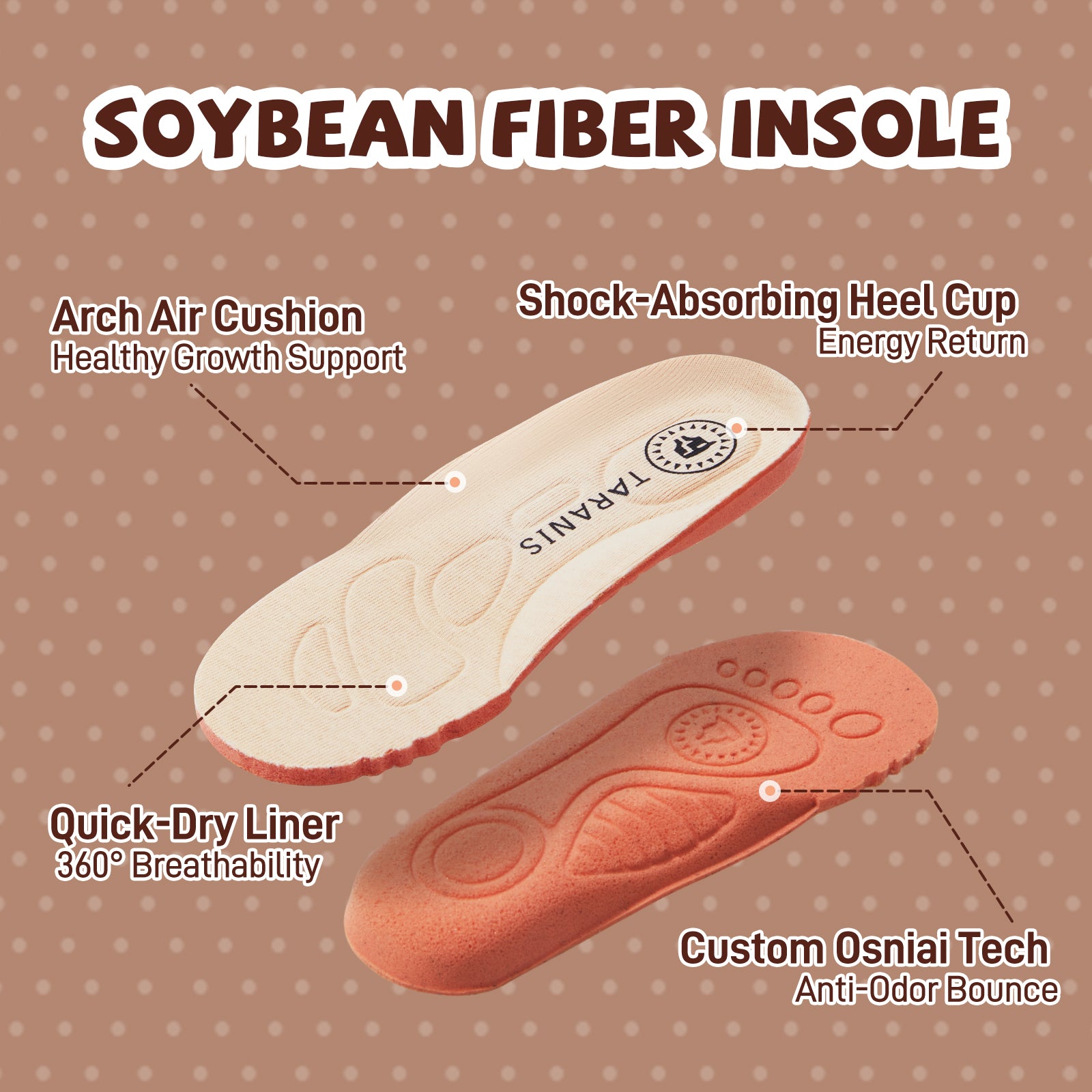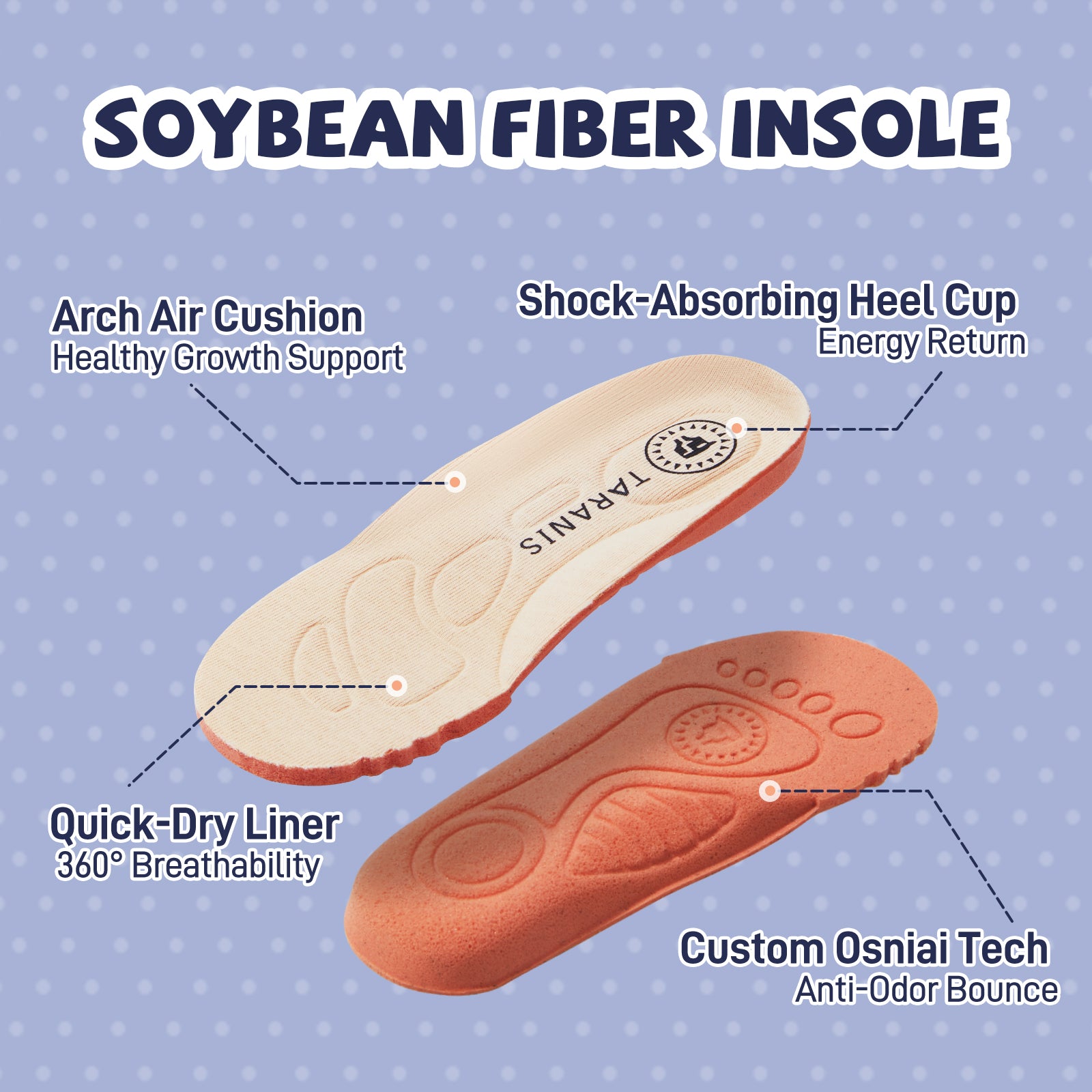 Biomechanically crafted insole provides gentle arch support to guide proper formation during crucial early growth stages.