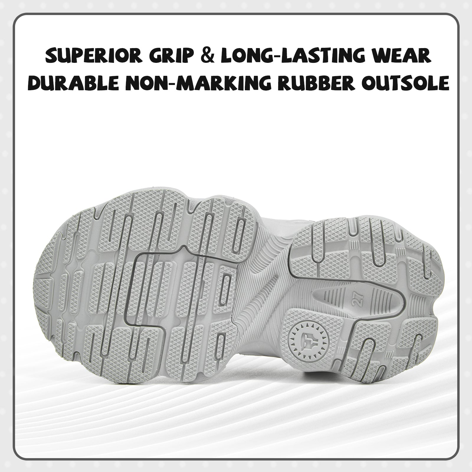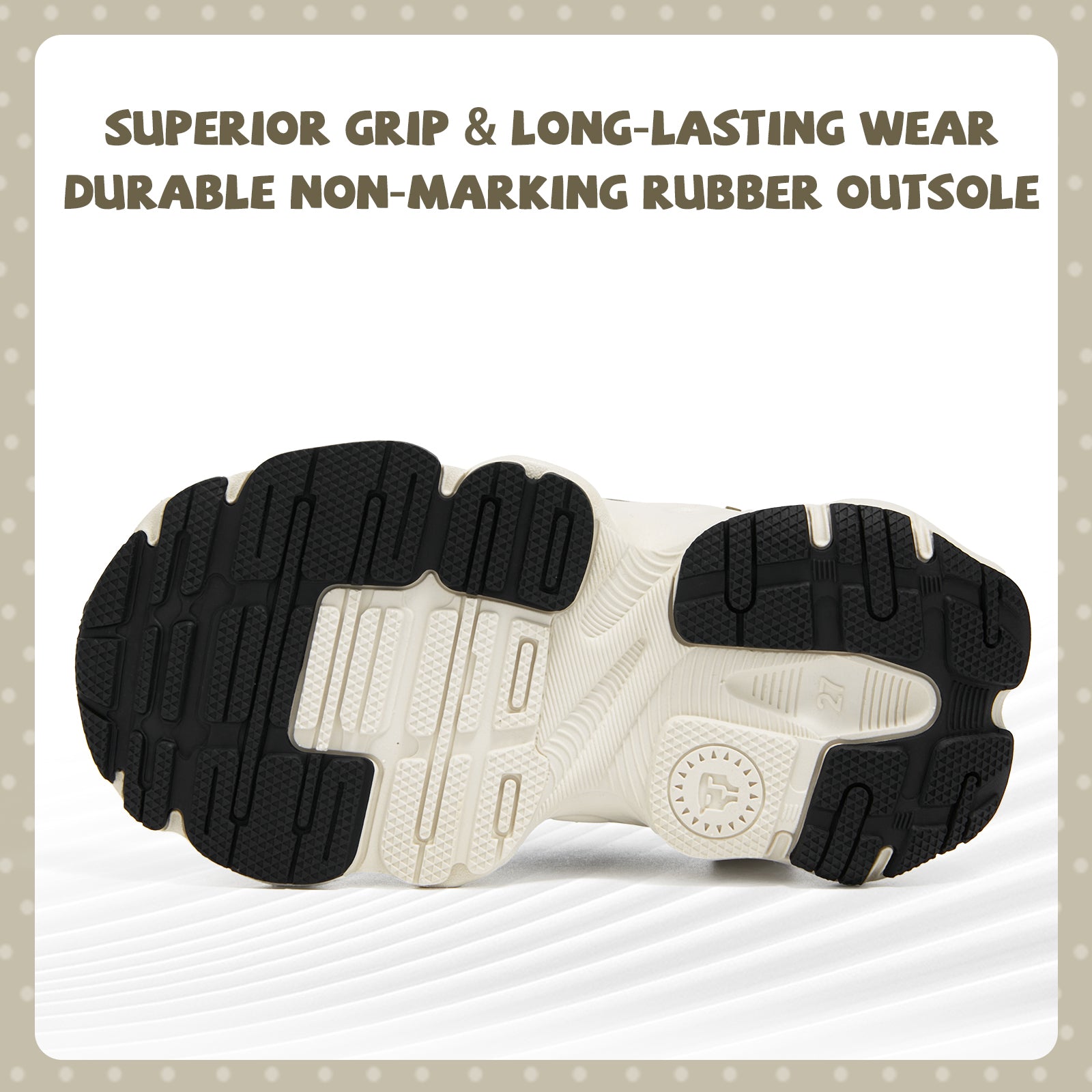 Durable, non-marking rubber outsole delivers reliable traction on wet, slippery, or uneven surfaces—helping toddlers and kids stay steady during play.