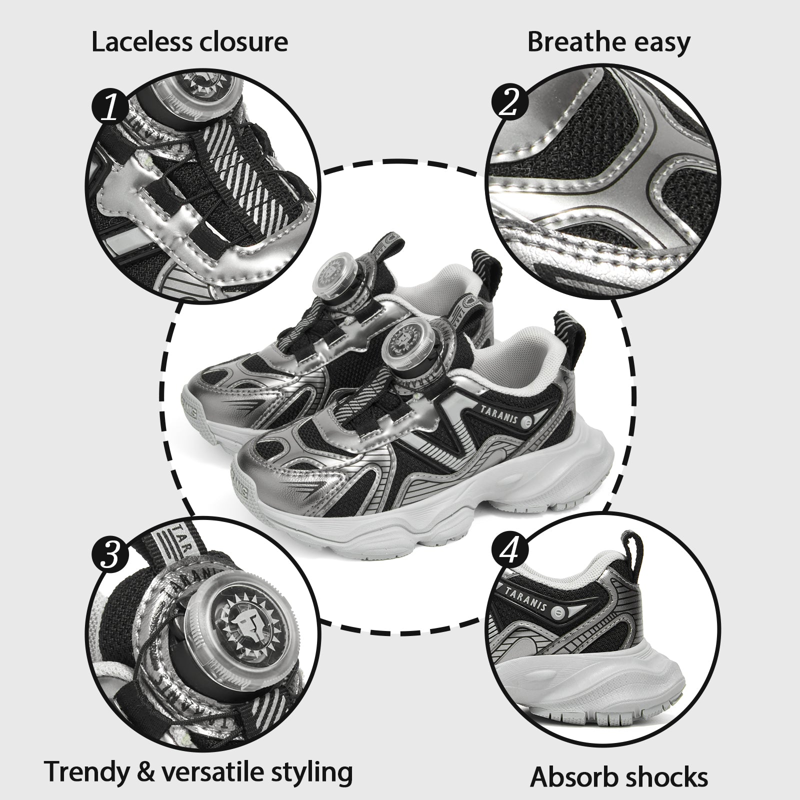 Shock-absorbing soles cushion pressure points, safeguarding growing feet, while vibrant, eye-catching designs let kids move with confidence and style.