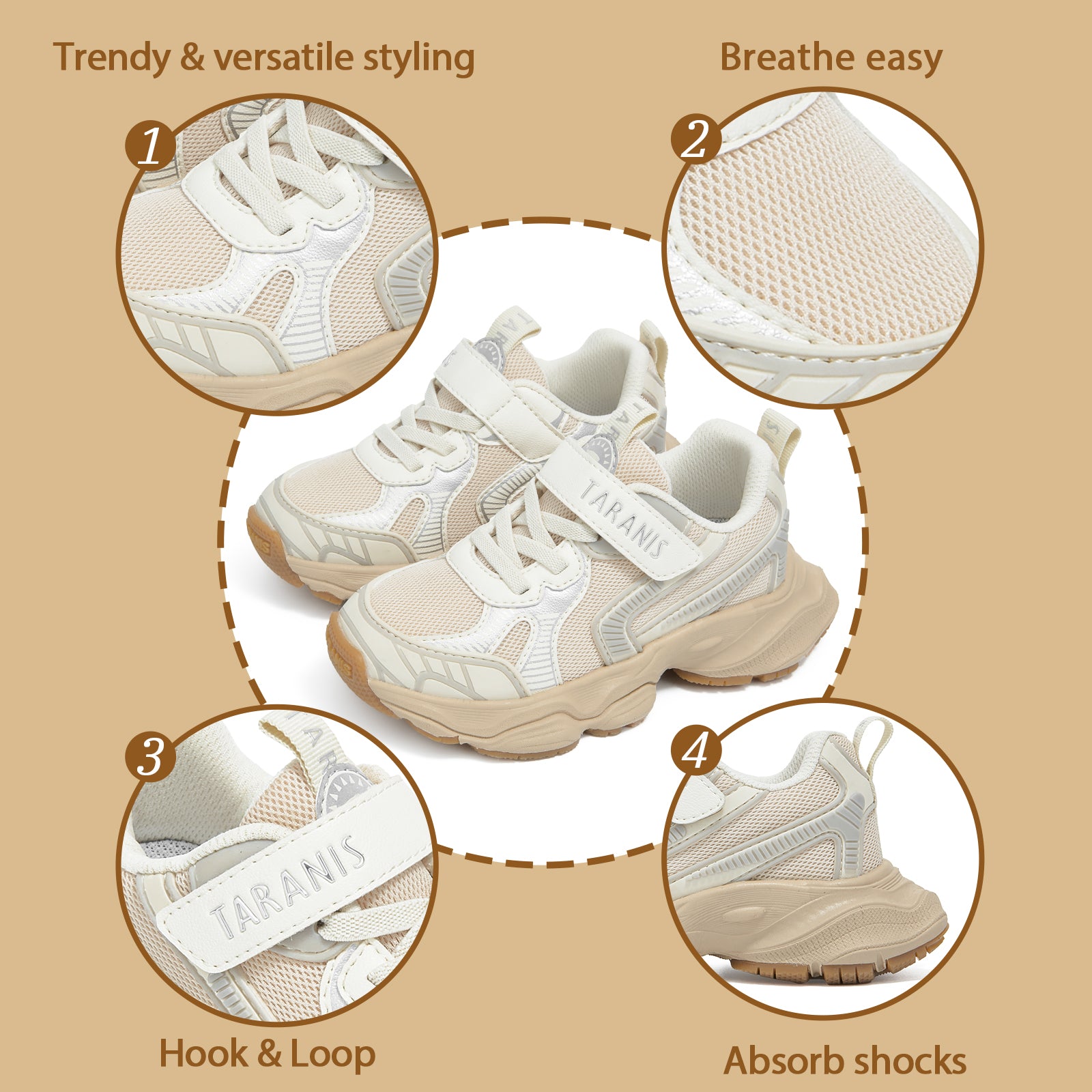 Shock-absorbing soles cushion pressure points, safeguarding growing feet, while vibrant, eye-catching designs let kids move with confidence and style.